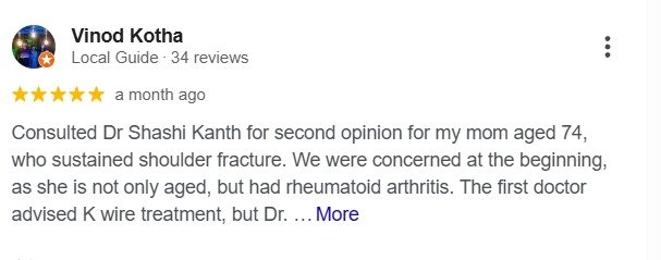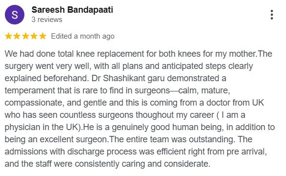 Patient feedback reflects the quality of care, ethical practice, and treatment outcomes provided by Dr. G. Shashi Kanth, a senior orthopaedic surgeon at STAR Hospitals, Hyderabad.
