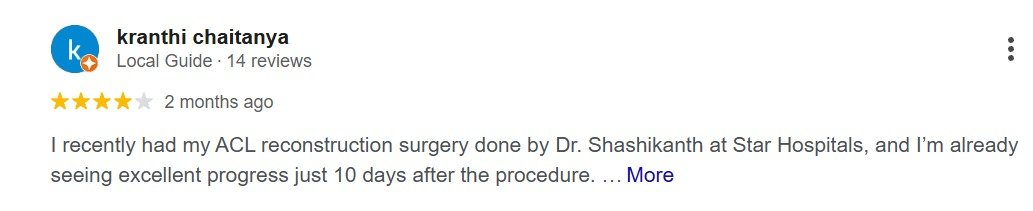 Patient feedback reflects the quality of care, ethical practice, and treatment outcomes provided by Dr. G. Shashi Kanth, a senior orthopaedic surgeon at STAR Hospitals, Hyderabad.